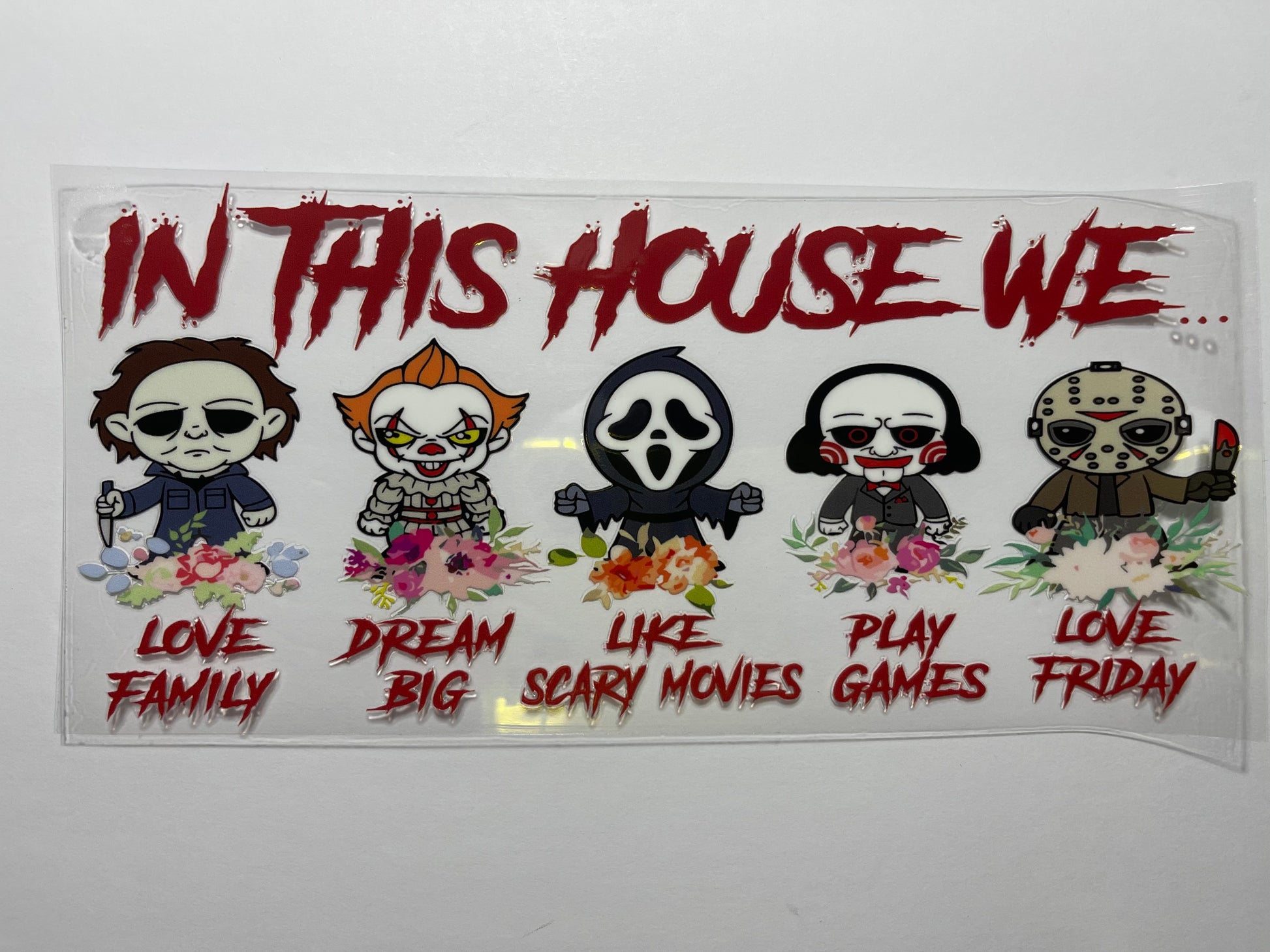 LOVE FAMILY, DREAM BIG, LIKE SCARY MOVIES, PLAY GAMES, LOVE FRIDAY horror wrap